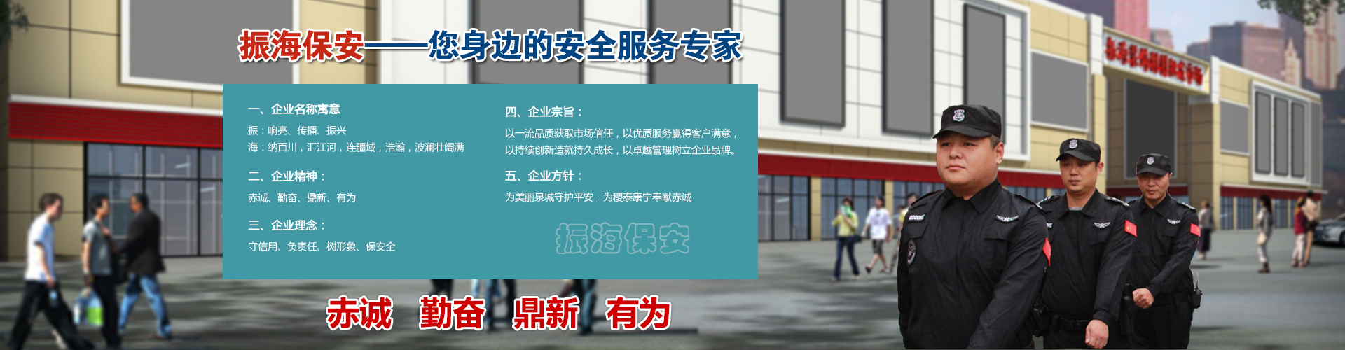 山東振海保安服務(wù)有限公司是一家專業(yè)的保安服務(wù)公司,提供人防安保、臨時勤務(wù)安保、危機(jī)處理安保、犬防安保、反跟蹤、調(diào)查、商業(yè)間諜等服務(wù),公司成立于2015年5月,是通過國家公安部門資質(zhì)認(rèn)證,經(jīng)山東省公安廳和濟(jì)南市工商局批準(zhǔn)成立的綜合性民營保安公司。公司立足濟(jì)南,面向山東省內(nèi)外,開展的業(yè)務(wù)涵蓋人防、技防、安檢、守護(hù)、隨身護(hù)衛(wèi)、大型活動特勤等安保項目。公司總部坐落于濟(jì)南市市中區(qū)英雄山立交樞紐南側(cè)振海裝飾材料市場大樓;公司培訓(xùn)基地位于濟(jì)南市南部山區(qū)。